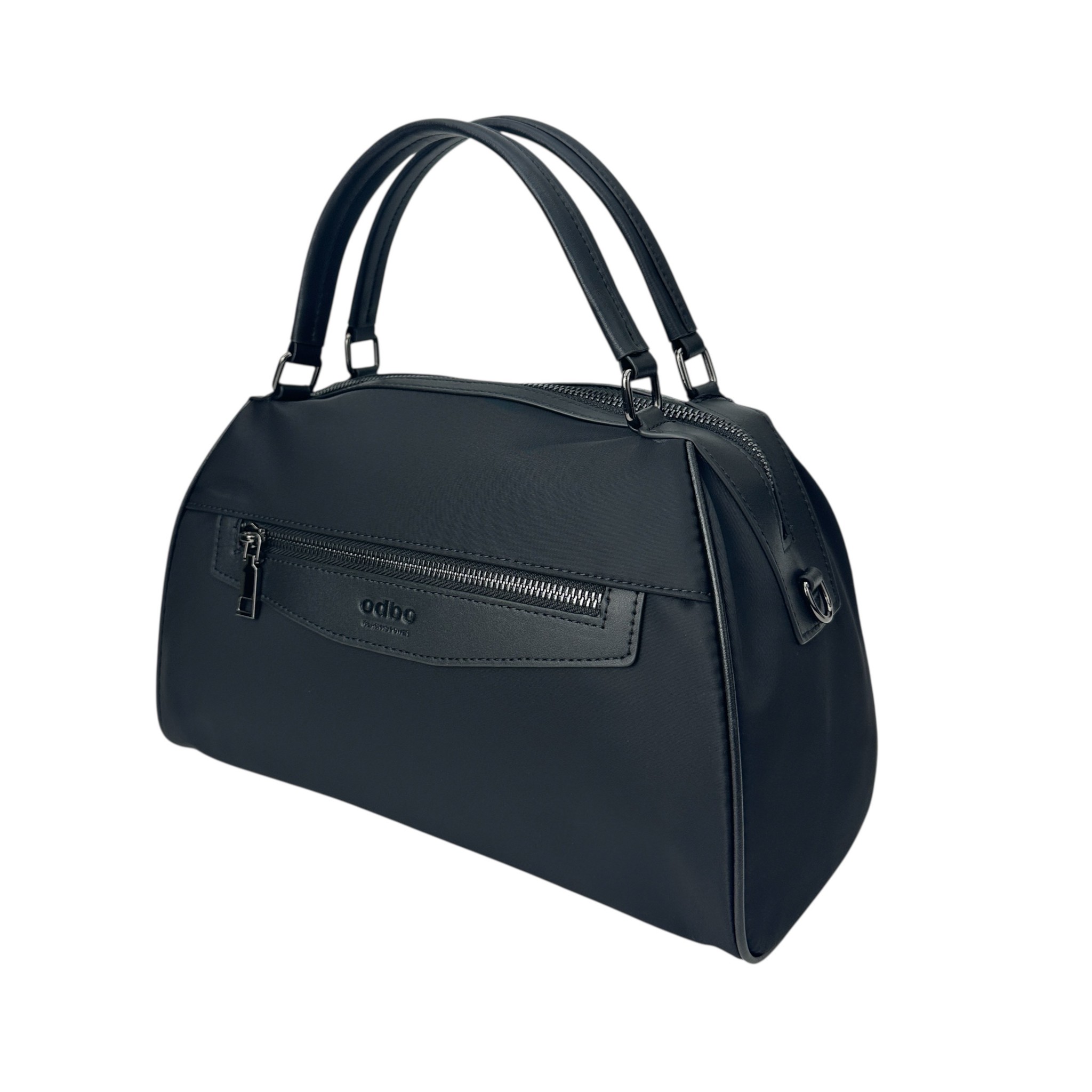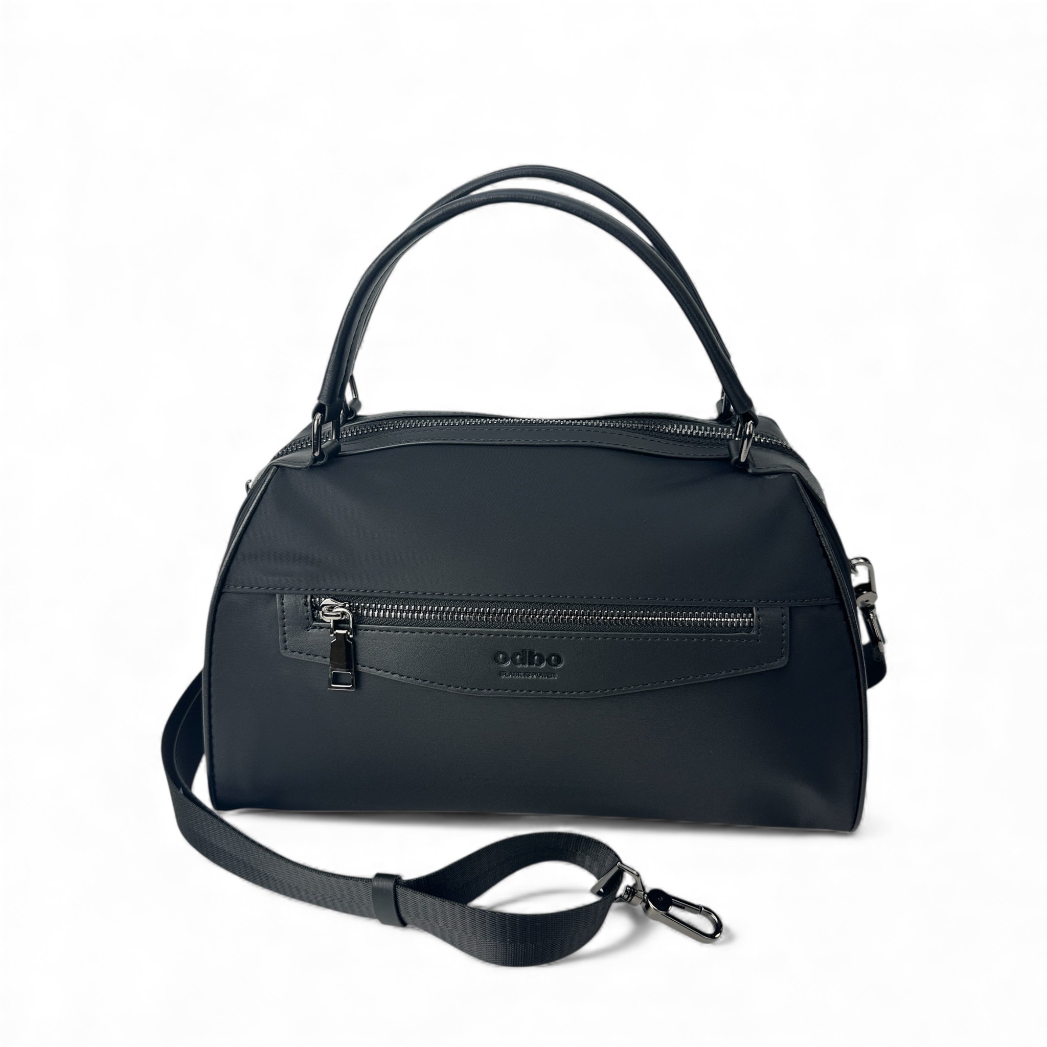 特色:以經典保齡球包輪廓為靈感,外型圓潤俐落。採用超輕防潑水布料結合超纖皮革拼接,兼具質感與實用性。