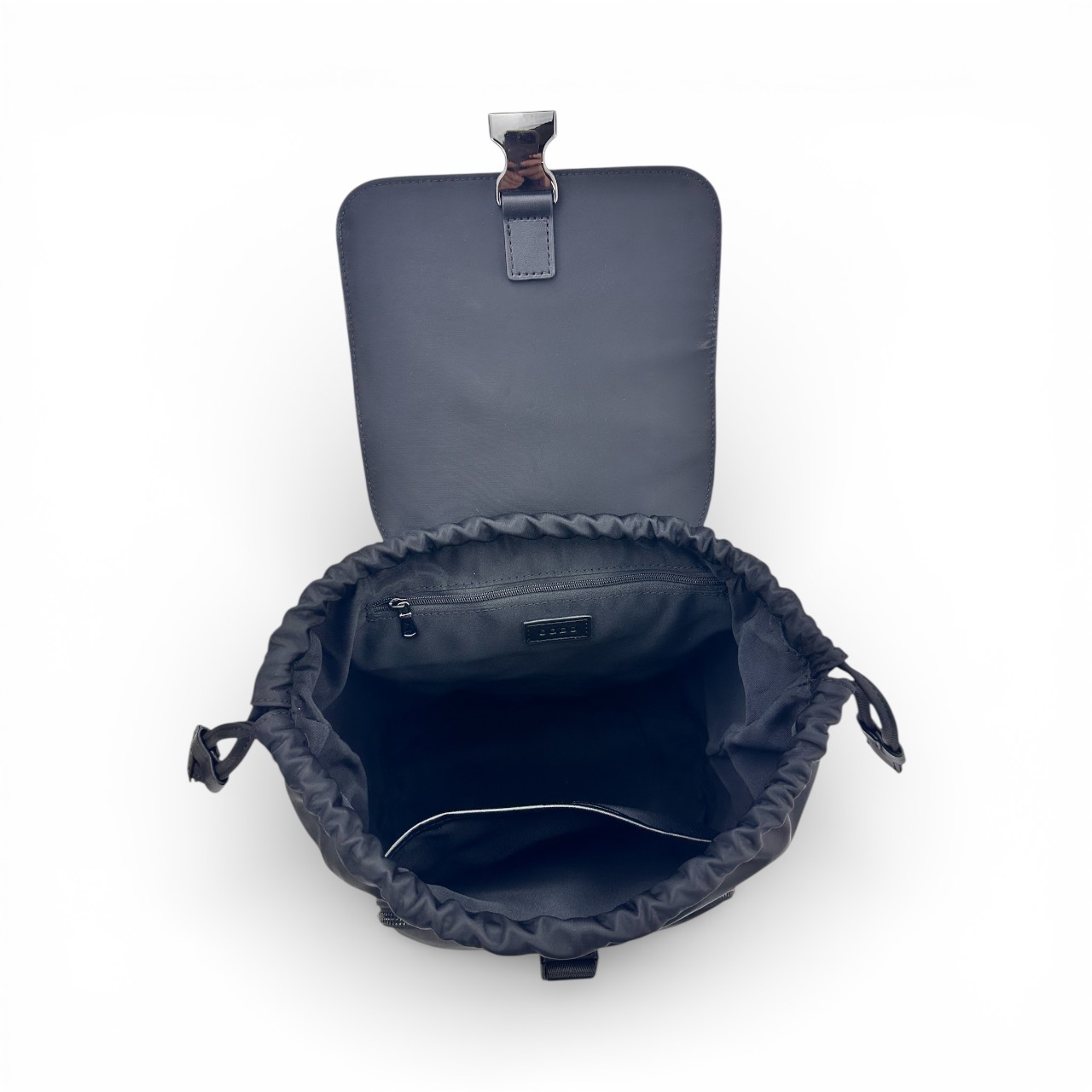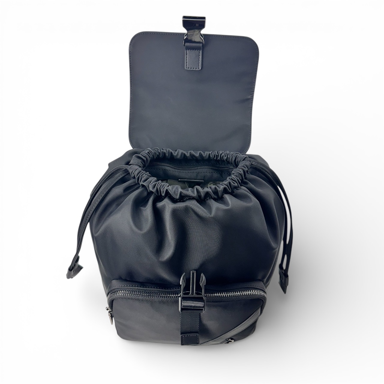 主袋口以束口設計搭配旋蓋結構,開闔快速又具安全性,兼顧實用與造型美感,適合通勤、旅行或日常外出使用,是男女皆適合的百搭後背包款。