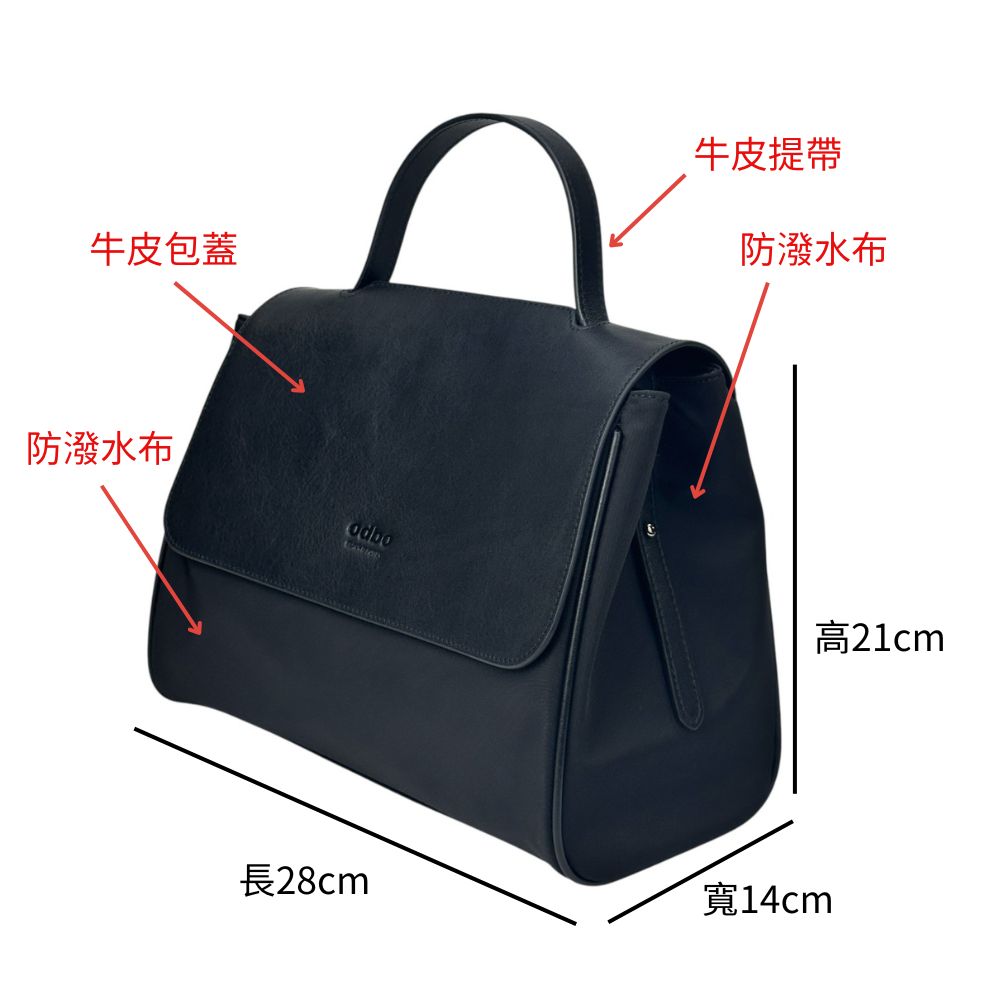 特色:甄選義大利頂級植鞣牛皮,純手工精製拼接防潑水布料展現精湛工藝與奢華質感。搭配精緻 odbo 拓印,低調優雅,觸感細膩溫潤,細節極具辨識度。一件凝聚匠心的藝術之作,完美詮釋品牌格調與品味。提背帶部分為牛皮額外另一條長背帶可替換方便側背及手提兩用。