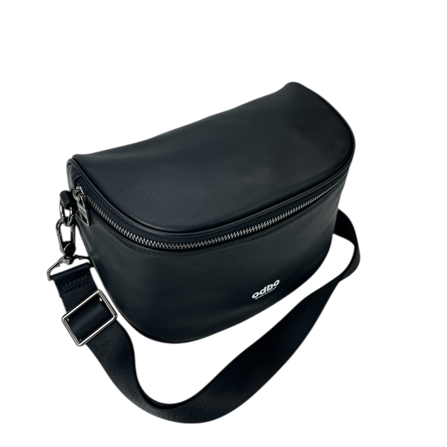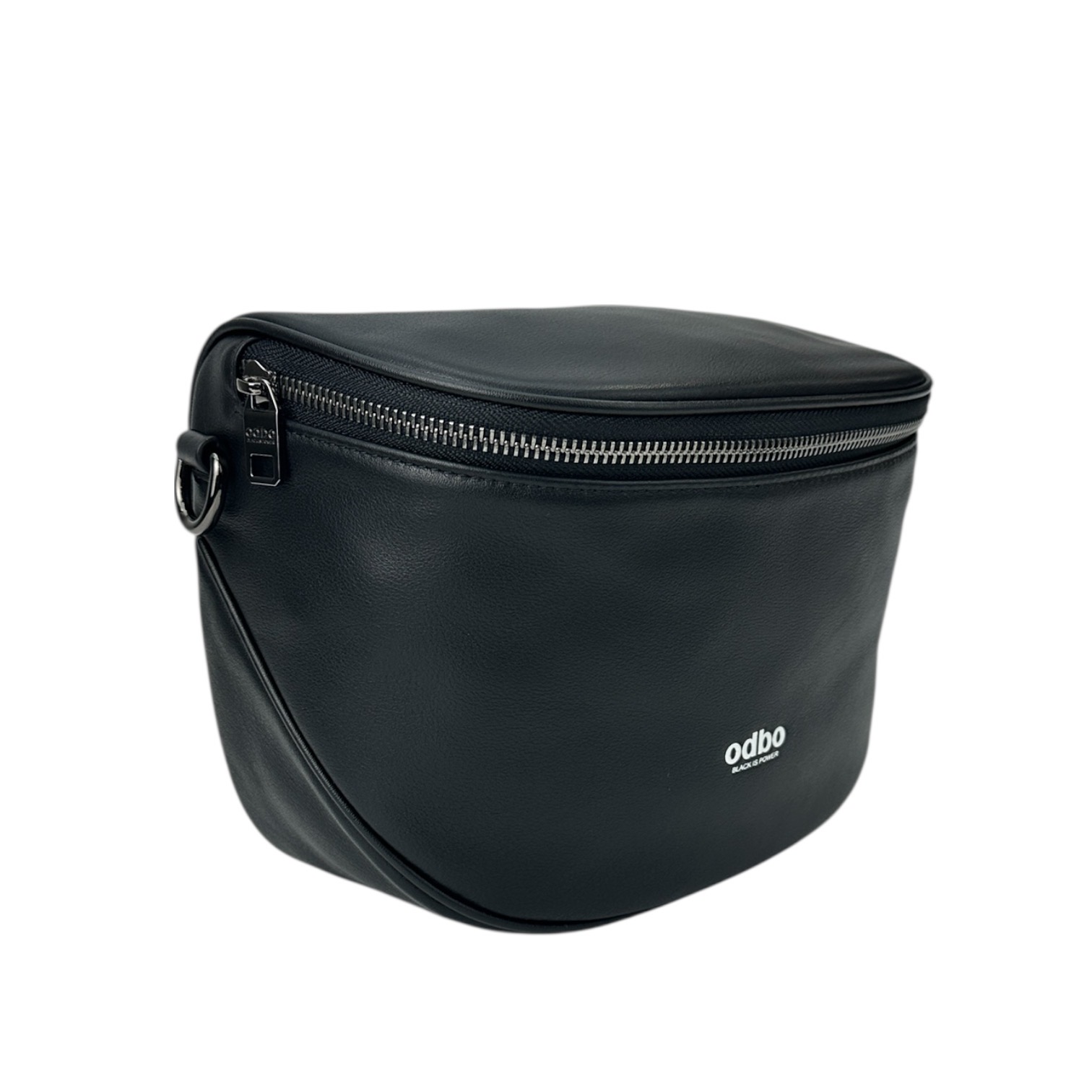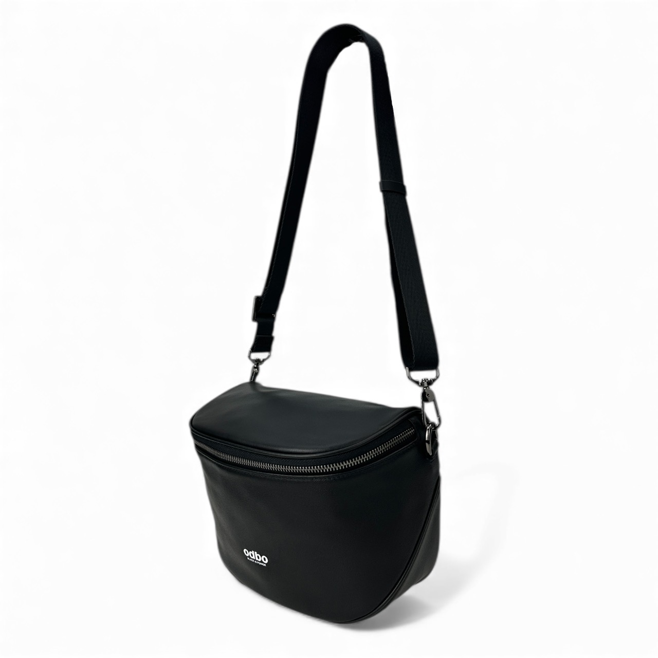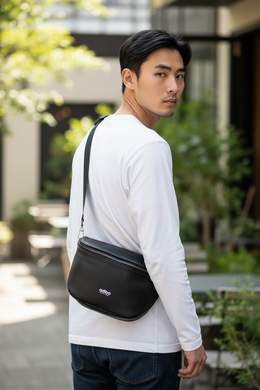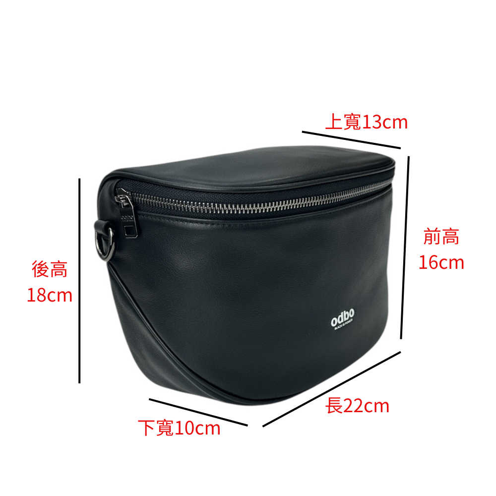 可調整的肩背帶讓你可自由切換 腰包背法、斜背、側背、肩背 多種背法,是旅遊、通勤與日常生活中都非常實用的 黑色斜背包。