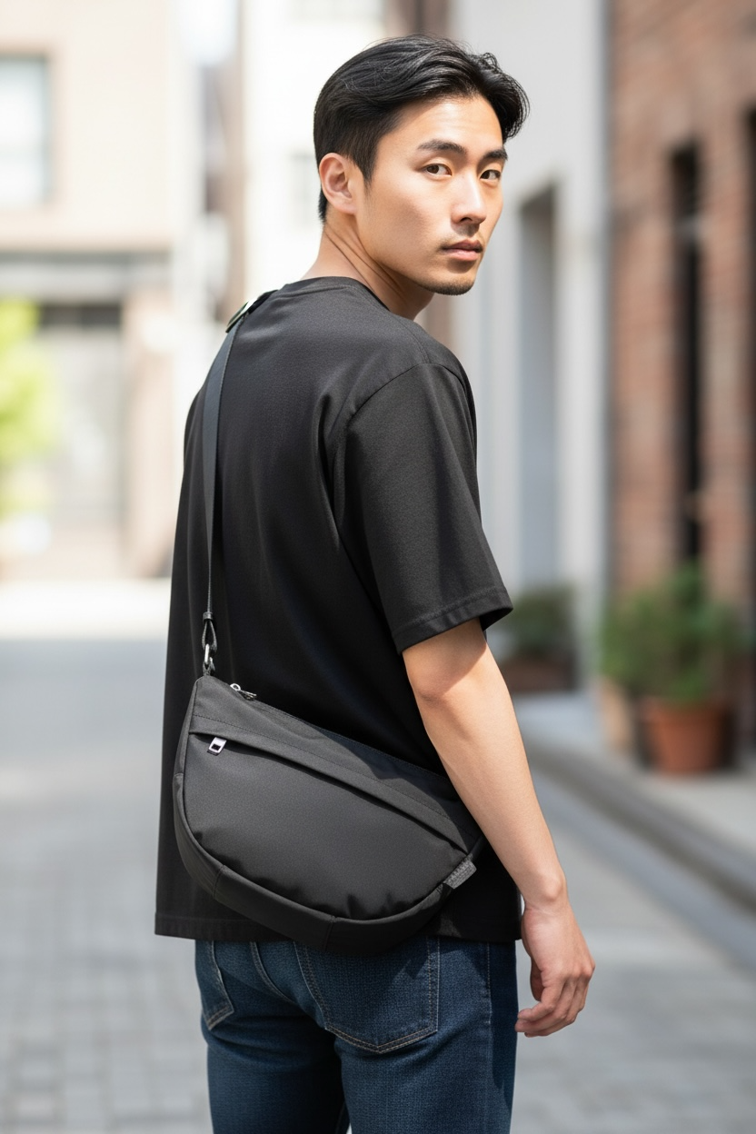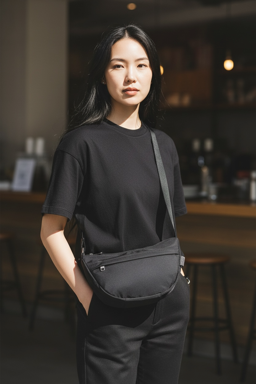 特色:這款包包以細緻防潑水布料打造,弧形彎月設計貼合身形,輕盈無負擔,兼具時尚與實用。